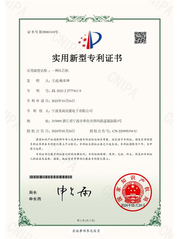 • 實用型專利證書
